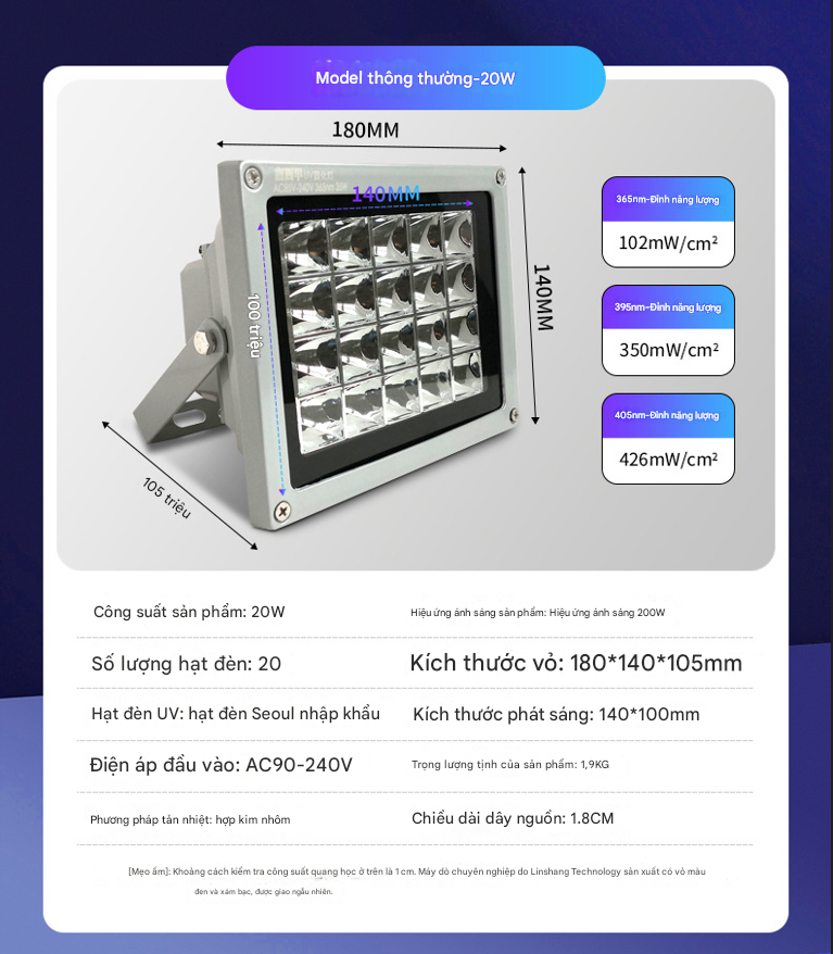 - Bước sóng của bóng: 380nm - cho thời gian khô keo nhanh hơn
