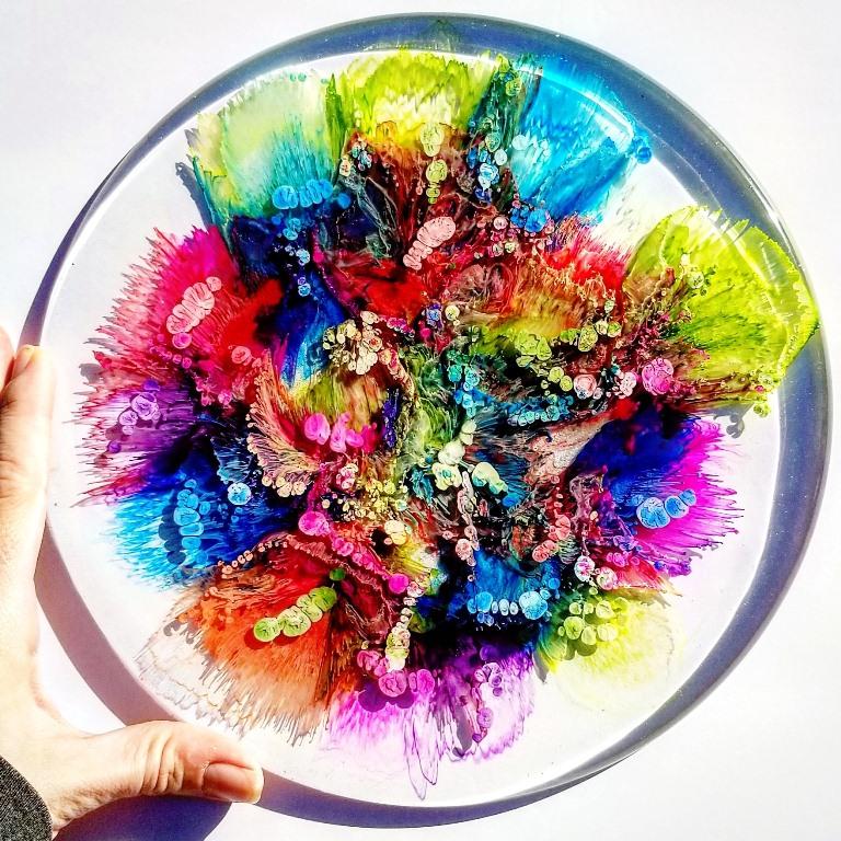 You can also use alcohol inks in painting and to add color to different surfaces such as glass and metals.